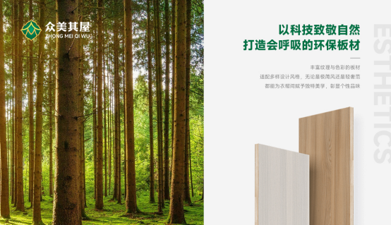 眾美其屋板材用嚴(yán)苛標(biāo)準(zhǔn)鑄就環(huán)?!靶尽辈模詣?chuàng)新工藝滿足審美追求,讓家不僅成為溫馨的港灣,更是孩子無憂成長的樂園。