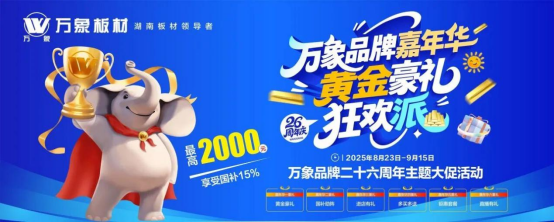 廿六載風(fēng)雨同行,感恩每一份不離不棄的信賴!為回饋消費(fèi)者始終如一的關(guān)注與厚愛,萬象品牌26周年慶特別打造“萬象品牌嘉年華?黃金豪禮狂歡派”主題大促——8月23日至9月15日,活動火熱啟幕!誠邀您親臨線下門店,解鎖26周年專屬優(yōu)惠與驚喜福利,在這場周年狂歡里,共赴品質(zhì)之約,收獲滿滿誠意。