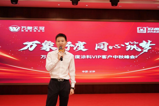 長(zhǎng)沙好度涂料集團(tuán)董事長(zhǎng)周利民先生上臺(tái)發(fā)表講話,系統(tǒng)解讀此次攜手打造 VIP客戶中秋峰會(huì)的戰(zhàn)略考量與長(zhǎng)遠(yuǎn)意義,并明確表示集團(tuán)將以峰會(huì)為紐帶,強(qiáng)化與合作伙伴、核心客戶的聯(lián)動(dòng),共促產(chǎn)業(yè)生態(tài)升級(jí)。