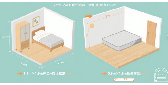 可折疊床墊是小戶型的絕佳選擇。這種床墊在不使用時(shí)可以折疊起來,收納方便,節(jié)省空間。例如,有些可折疊床墊可以折疊成三折或四折,輕松收納在床下或靠墻放置。當(dāng)需要使用時(shí),只需展開即可恢復(fù)原狀,非常適合偶爾有客人留宿的小戶型家庭。