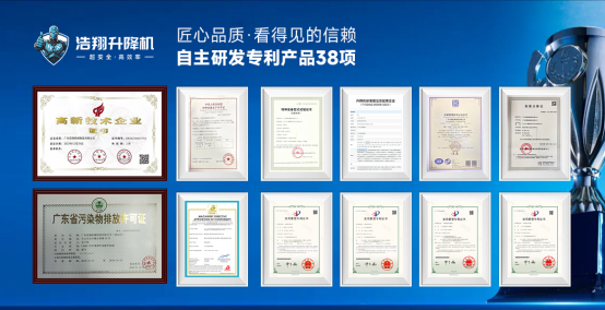 浩翔升降機(jī)始終堅(jiān)守品質(zhì)底線,已成功獲得特種設(shè)備生產(chǎn)許可證《TS2444360-2027》、質(zhì)量管理體系認(rèn)證《GB/T 19001-2016/ISO 9001:2015》及高新技術(shù)企業(yè)認(rèn)證《GR202344017911》,以權(quán)威資質(zhì)背書產(chǎn)品合規(guī)性、可靠性與創(chuàng)新力。