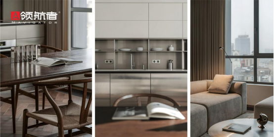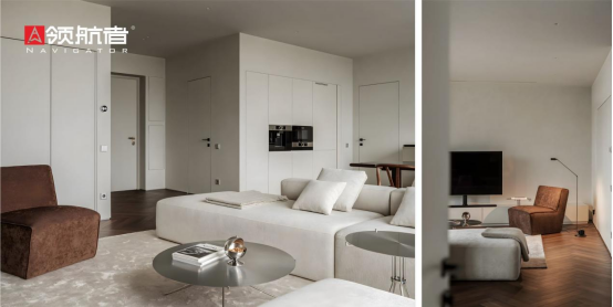 領(lǐng)航者定制柜是北歐色彩哲學(xué)的最佳載體,米白色的客廳定制柜用啞光質(zhì)感避免強(qiáng)光刺眼,與墻面銜接自然,悄悄拉寬空間視覺(jué);餐廚區(qū)的深棕色定制柜保留木紋底色,剛好呼應(yīng)深色木地板,旁邊再搭配淺灰色開(kāi)放格架,深淺對(duì)比間帶出細(xì)膩層次。就連角落的定制矮柜,也以“上淺下深”配色貼合整體風(fēng)格,不破壞空間通透感,色彩和諧感全藏在這些定制柜的搭配里。