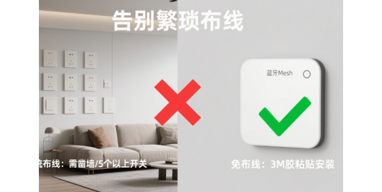 傳統(tǒng)的照明控制系統(tǒng)安裝往往需要專(zhuān)業(yè)的電工進(jìn)行復(fù)雜的布線工作,不僅耗時(shí)費(fèi)力,而且還可能對(duì)墻面和地面造成損壞。而免布線藍(lán)牙Mesh一鍵場(chǎng)景面板則完全避免了這些問(wèn)題。它采用無(wú)線連接方式,只需要將面板固定在合適的位置,就可以與無(wú)主燈設(shè)備進(jìn)行配對(duì),實(shí)現(xiàn)快速安裝。這種便捷的安裝方式,讓你無(wú)需擔(dān)心施工的麻煩,輕松打造智能照明系統(tǒng)。