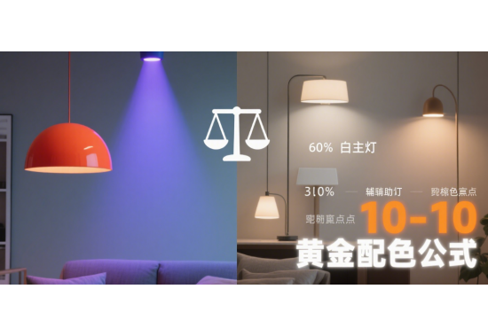 所謂60%黃金配色公式,就是在整體照明色彩搭配中,主色調(diào)占60%,輔助色調(diào)占30%,點(diǎn)綴色調(diào)占10%。這種比例的分配是基于人的視覺(jué)審美習(xí)慣和色彩心理學(xué)原理。主色調(diào)是整個(gè)空間照明的基礎(chǔ),它能夠營(yíng)造出空間的整體氛圍;輔助色調(diào)起到補(bǔ)充和豐富主色調(diào)的作用,使空間更具層次感;點(diǎn)綴色調(diào)則是為了增添亮點(diǎn)和個(gè)性,讓空間更加生動(dòng)有趣。